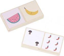 Ce domino magnifiquement illustré par Sarah Betz est non seulement amusant, mais aussi éducatif. Les enfants apprennent à reconnaître et associer les mêmes fruits et légumes.