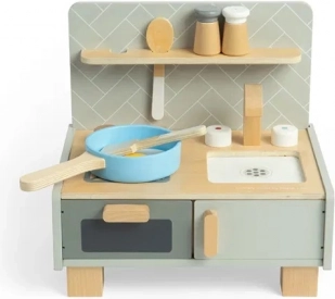 Son design compact dans des tons neutres doux s’intègre parfaitement dans toute chambre d’enfant ou salle de jeux. Elle est fabriquée en bois certifié FSC® et peinte avec des peintures non toxiques, garantissant un amusement durable et sûr pour les enfants dès 3 ans. En plus du plaisir, cette cuisine favorise le développement de l’imagination et de la créativité pendant que les enfants imitent les rôles culinaires.