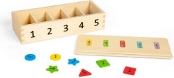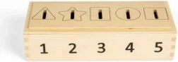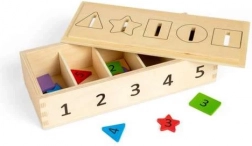 Utilisez cette boîte innovante pour entraîner la reconnaissance des chiffres, des couleurs et des formes. Les enfants peuvent insérer des jetons de différentes couleurs et formes, marqués des chiffres de 1 à 5, dans les ouvertures correspondantes. Grâce au couvercle amovible et réversible, la manipulation est simple et amusante.