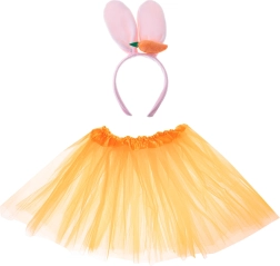 Découvrez le costume de lapin parfait, qui fera sensation à chaque carnaval, Halloween ou fête à thème. Cet ensemble associe un élégant tutu orange à un serre-tête doté de douces oreilles de lapin et d’une carotte.