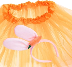 Comprend un tutu orange et un serre-tête avec oreilles et carotte.