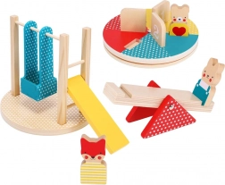 Profitez de jouer au parc avec des amis animaux curieux, y compris un renard, un ours et un lapin. Cet ensemble en bois est idéal pour le développement de la motricité fine et de la perception émotionnelle des enfants. Le set comprend des attractions comme un manège, une balançoire et un toboggan, garantissant aux enfants des heures de divertissement.