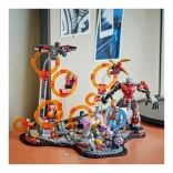 La scène est complétée par des portails interdimensionnels orange, deux fonctions d’explosion de rocher et des supports transparents pour des poses de « vol » dynamiques. Le modèle se reconfigure facilement pour le jeu ou l’exposition. Avec l’application LEGO Builder, profitez d’instructions 3D, du zoom, de la rotation et du suivi de progression.