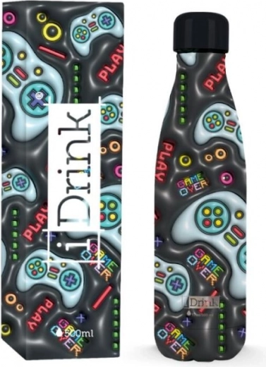 Bouteille isotherme stylée avec motif gaming de manettes et inscriptions « Game Over », idéale pour les voyages, l’école et le bureau. Grâce à sa capacité de 500 ml et à ses dimensions compactes, elle maintient votre boisson à la température souhaitée plus longtemps tout en se glissant facilement dans un sac ou un sac à dos. Conception résistante, volume pratique et design original pour les amateurs de jeux en font un excellent accessoire du quotidien.