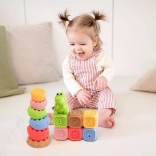 Ce jeu de construction Montessori et pyramide sensorielle est un excellent choix pour les parents qui souhaitent engager leurs enfants dans un jeu interactif et sensoriel. Grâce à son matériau indéformable et sûr, ces jouets sont idéaux non seulement pour jouer, mais aussi pour le bain, car ils ne comportent aucun orifice, ce qui évite l’accumulation d’eau à l’intérieur. Parmi les autres avantages :