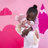 Cette poupée réaliste Llorens, fabriquée à la main en Espagne, offre une finition soignée de chaque aspect du corps de bébé, y compris de jolis petits plis et les organes génitaux. Le bébé est entièrement positionnable et peut s’asseoir grâce aux articulations des membres. Le corps en vinyle permet de laver la poupée confortablement, en faisant attention aux cils. Un entretien accru garantit une plus longue durée de vie.