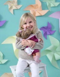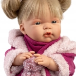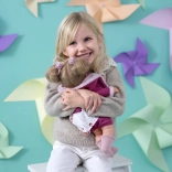 Découvrez la merveilleuse poupée Joelle de la marque Llorens, qui imite fidèlement un vrai bébé. Lorsqu'on enlève la tétine, elle commence à dire les mots « maman », « papa » et émet un son de pleurs réaliste, qui peut être apaisé avec une tétine magnétique. Elle est fabriquée à la main en Espagne et emballée dans une belle boîte cadeau.