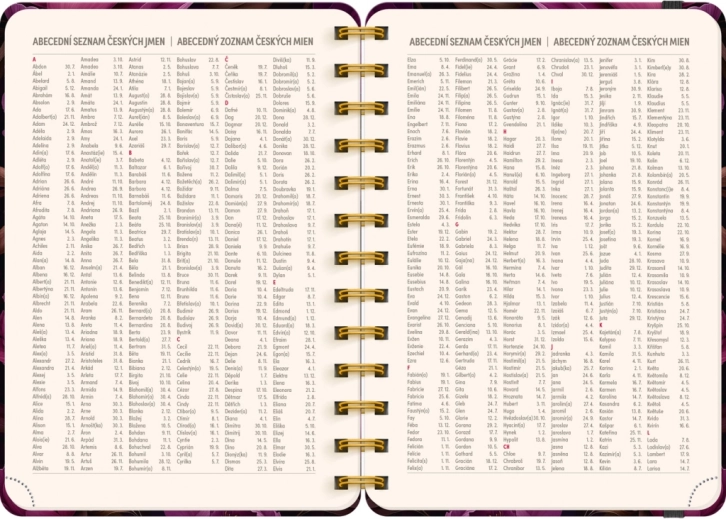 - Contient une liste des prénoms tchèques et slovaques avec les jours de fête.