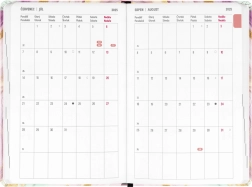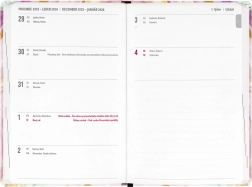 Élégant agenda de 18 mois au style marbre rose. Il offre un aperçu des années 2025 et 2026 avec les fêtes tchèques et slovaques.
