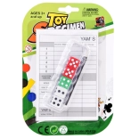 Cinq dés classiques à six faces, un bloc de score, un crayon et un étui résistant – prêt à jouer en un instant.