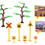 Locomotive, 3 wagons, rails, éléments décoratifs