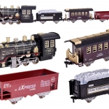 Grand train rétro avec locomotive télécommandée avec lumière et vapeur