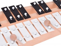 - Les lames métalliques sont dotées de coussinets en mousse garantissant une résonance pure et chaleureuse.