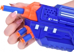 Ce pistolet jouet allie amusement et sécurité grâce aux projectiles en mousse et aux billes de gel, garantissant une protection pendant le jeu.