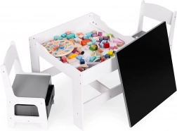 Le set de mobilier pour enfants ECOTOYS est idéal pour jouer et se reposer. Il comprend 2 chaises et une table avec une structure en MDF résistante. La table est équipée d’un plateau réversible et amovible avec tableau à craie, qui sert à la fois au jeu et à l’apprentissage, aidant à développer la motricité fine et la créativité.