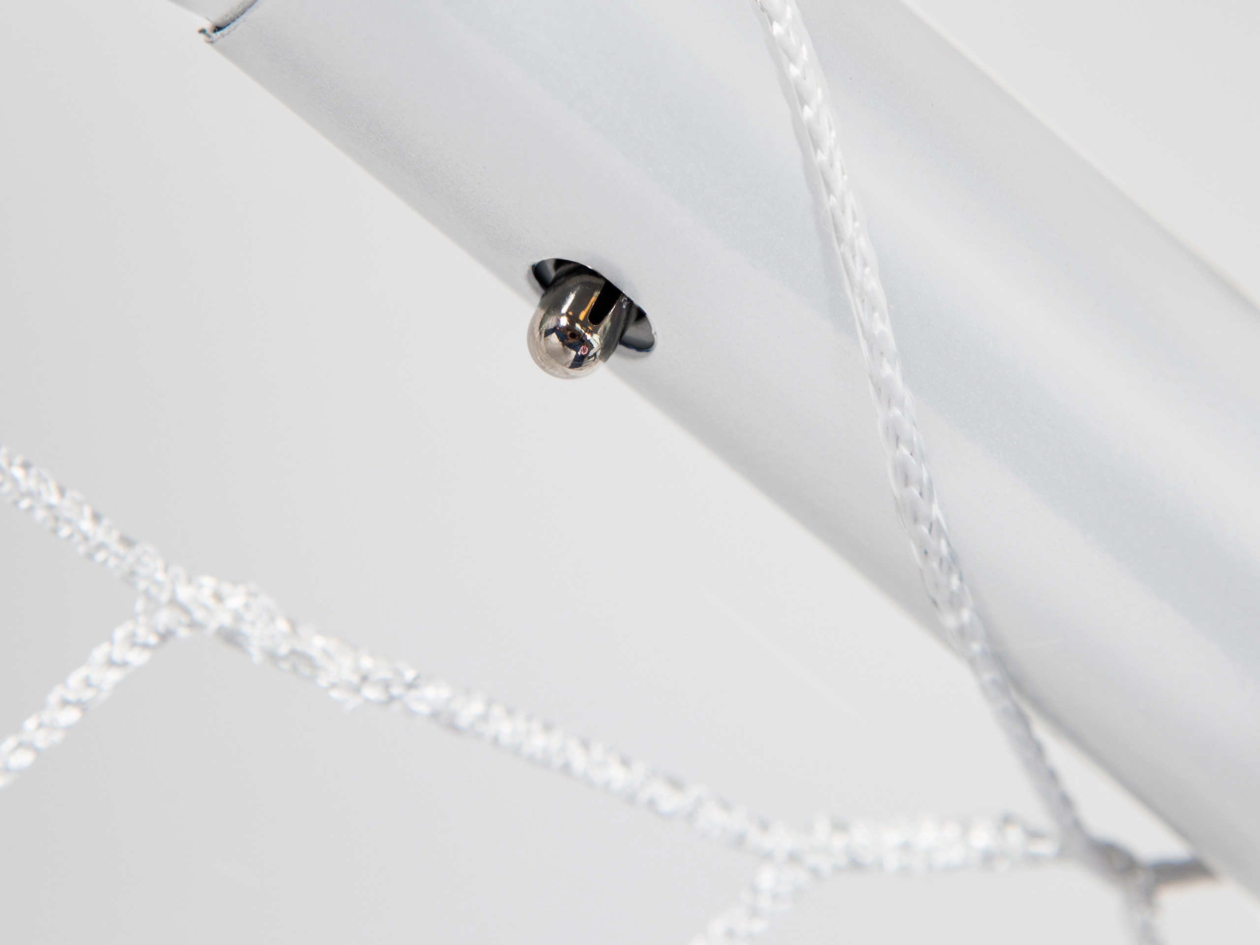 Le montage ne prend que 15 minutes ! Les éléments s’assemblent à l’aide de verrous à cliquet, ce qui facilite le montage et le démontage rapides du but. Des piquets métalliques pour fixer le but au sol sont également inclus dans le kit.