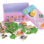 Puzzle éducatif en bois avec des animaux dans une boîte