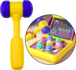 La machine est équipée d'un affichage digital pour suivre le score pendant le jeu, ajoutant un élément de compétition et motivant les enfants à faire de meilleures performances. Le jeu est alimenté par des piles, permettant d'activer des effets lumineux et sonores joyeux, qui augmentent l'engagement et la diversité du jeu. L'emballage comprend un marteau léger et sûr, idéalement adapté aux mains des enfants, afin que le jeu soit non seulement excitant mais aussi totalement sûr.