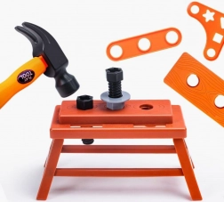 Tous les composants sont fabriqués en plastique résistant et sûr, sans arêtes vives. La mallette pratique sert non seulement d’espace de rangement, mais aussi de moyen simple pour transporter l’atelier, par exemple au jardin ou chez les grands-parents.