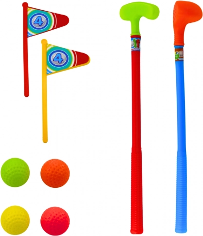 Le set complet comprend tout le nécessaire pour débuter l’aventure du golf : 3 clubs de golf légers et colorés, 4 balles de golf, 2 fanions avec trou, pouvant être placés n’importe où, ainsi qu’un chariot mobile.
