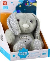 Ce lapin en peluche est conçu pour les tout-petits dès la naissance. Il est fabriqué en peluche douce et agréable au toucher, dans une teinte grise apaisante, procurant une impression de calme. Le panneau interactif dans le ventre du lapin offre diverses fonctions qui favorisent l’apaisement et l’endormissement de l’enfant. Ce jouet est idéal non seulement pour les nourrissons, mais aussi pour les enfants plus grands qui ont peur de dormir seuls.