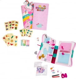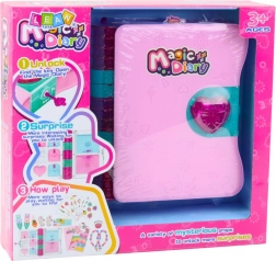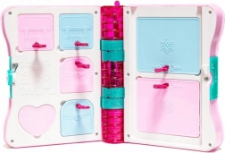 Le journal s’ouvre à l’aide d’une petite clé rangée dans un tube scintillant à côté du journal. La première clé de l’espace de rangement intérieur est dissimulée dans le petit cœur en surface. En plus du journal et du carnet, il comprend des accessoires pour fabriquer des bracelets – perles et cordons – ainsi que deux crayons et un taille-crayon pour noter les secrets. À l’intérieur du journal, vous trouverez d’autres compartiments, chacun avec sa propre clé.