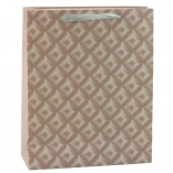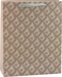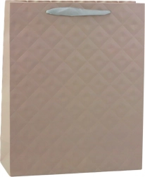Ce sac cadeau est fabriqué en papier renforcé de haute qualité. Sa surface est ornée d’un relief géométrique qui réfléchit joliment la lumière. Il comporte des poignées en satin dans une teinte délicate, assurant un transport confortable et apportant une touche de douceur au sac.