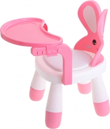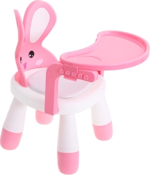 Cette chaise multifonction au motif lapin transforme chaque repas et moment de jeu en un agréable rituel. La tablette rose amovible sert à nourrir, dessiner ou construire des blocs, tandis que le dossier ergonomique à oreilles soutient une assise correcte et confortable.