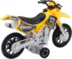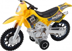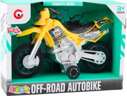 Cette moto est fabriquée en plastique durable qui résiste au jeu intensif. La couleur jaune et les autocollants de course apportent un look attrayant, tandis que les grandes roues tout-terrain assurent la stabilité sur les surfaces irrégulières.