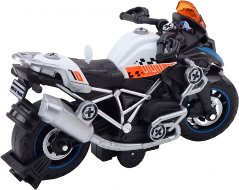 Fabriqué en plastique durable et sûr, le jouet se distingue par sa longue durée de vie même en cas d’utilisation intensive. Toutes les pièces sont soigneusement adaptées aux mains des enfants pour un jeu agréable. La moto est alimentée par des piles incluses, ce qui permet de jouer immédiatement après l’ouverture de la boîte.