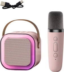 Le set comprend un haut-parleur d’une puissance de 5 W et un microphone sans fil. Le haut-parleur est équipé du Bluetooth, d’un lecteur de carte TF, de ports USB et AUX, d’un contrôle de l’éclairage LED et de boutons pour régler le volume, choisir le mode et gérer la lecture. Des modes karaoké sont également disponibles avec possibilité d’activer ou de réduire l’écho.
