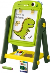 Le tableau comprend des pinces pour fixer du papier, permettant aux enfants de créer de véritables œuvres d’art. L’emballage inclut un riche ensemble d’accessoires, notamment des marqueurs, des craies, une éponge et des aimants colorés avec lettres, chiffres et symboles mathématiques.