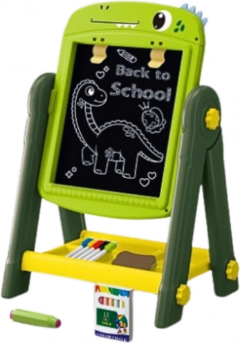 Tableau magnétique double face pour dessiner Dinosaure vert avec accessoires