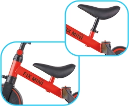 Trike Fix Mini propose trois modes de conduite : draisienne à trois roues pour les plus petits, tricycle classique avec pédales sur la roue avant, et mode entraînement avec roues arrière rapprochées pour travailler l’équilibre avant de passer au vélo à deux roues. Grâce au changement de configuration rapide, vous adaptez le vélo à l’âge et aux aptitudes de l’enfant en un clin d’œil.