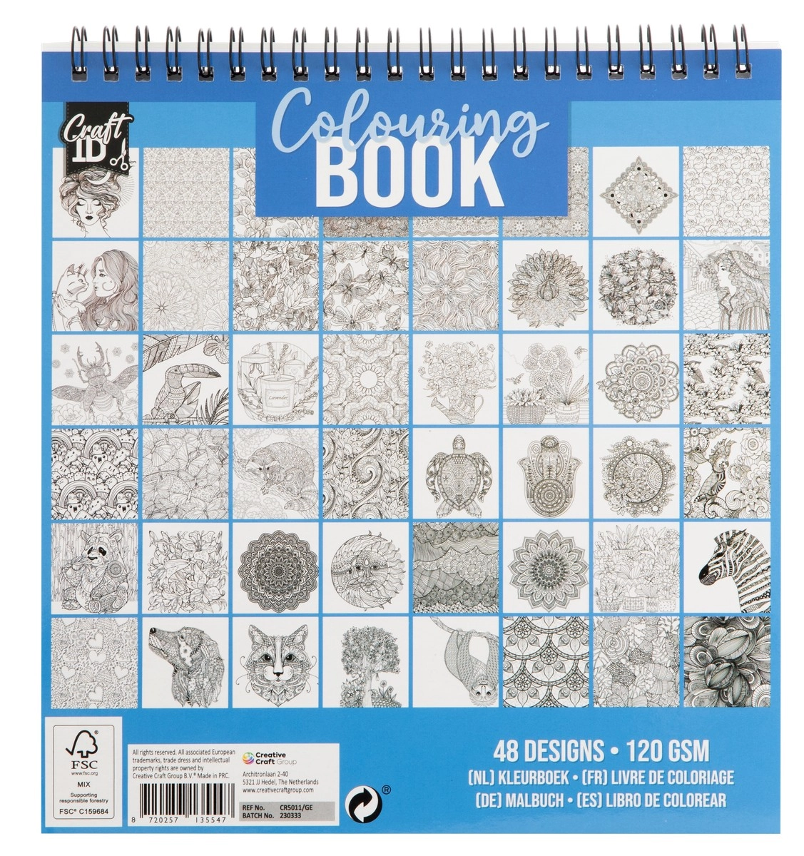 Livre de coloriage Bleu avec reliure à spirale, idéal pour la détente et l’expression créative. Contient 24 feuilles avec 48 motifs à colorier sur du papier de haute qualité.