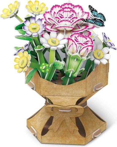 Puzzle 3D Bouquet de fleurs Œillets, 134 pièces. Assemblez un bouquet coloré sans colle ni ciseaux. Cubic Fun.