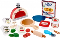 Les enfants peuvent « cuire » la pizza dans un petit four, utiliser la plaque, la pelle, les assiettes et les épices – comme dans une vraie pizzeria. Le jeu est intuitif, amusant et riche en détails.