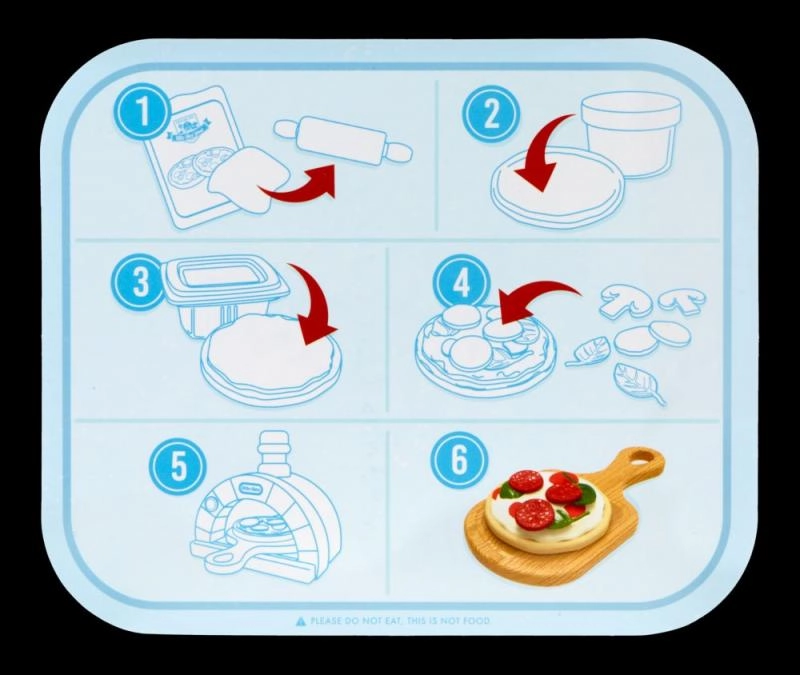 Le kit inclut également une carte-recette illustrée simple, qui aide les enfants à suivre des instructions visuelles de base. Grâce au matériau de modelage réutilisable, les petits chefs peuvent essayer sans cesse de nouvelles combinaisons d’ingrédients et créer la pizza de leurs rêves.