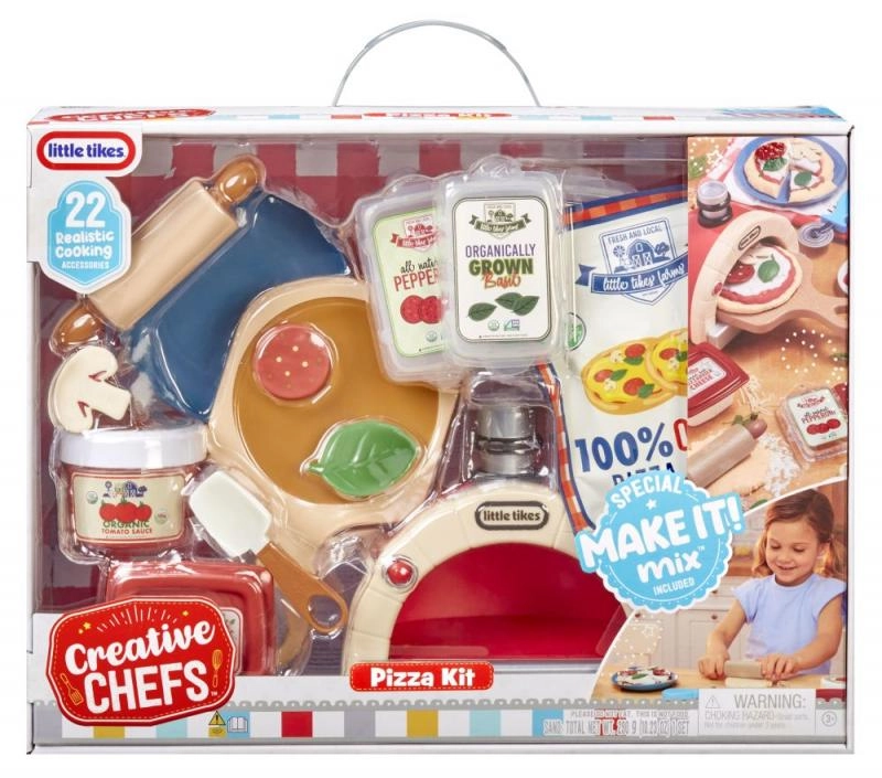 Lancez une pizzeria à la maison avec le kit jouet Creative Chefs Pizza Kit ! Les enfants peuvent « préparer », « cuire » et servir leur propre pizza grâce au mini four, aux nombreux accessoires et aux ingrédients modelables réutilisables. Jeu de chef cuisinier, motricité fine, créativité et jeu de rôle réunis dans un seul coffret ludique qui se transforme en table de jeu pratique.