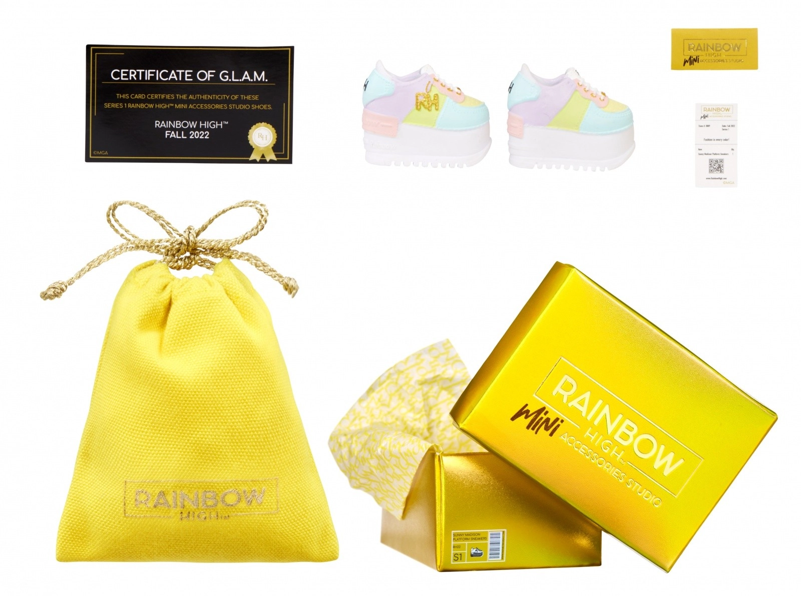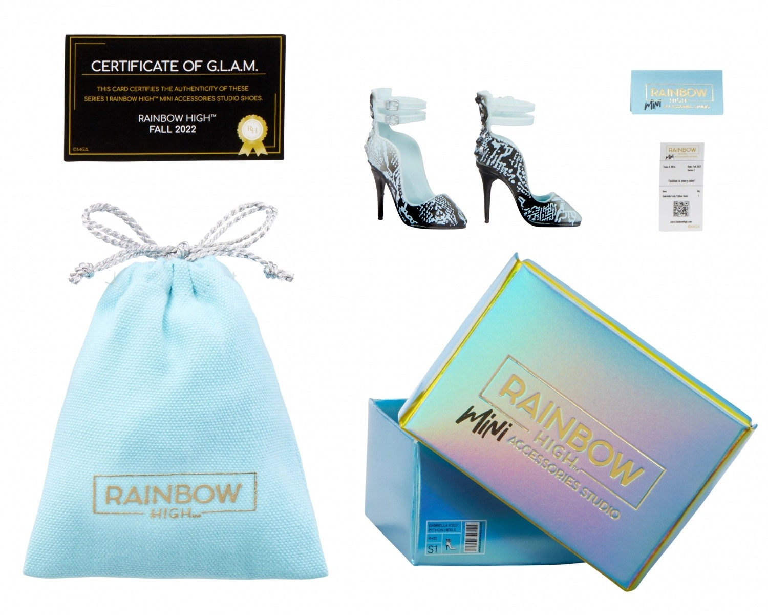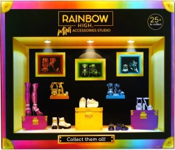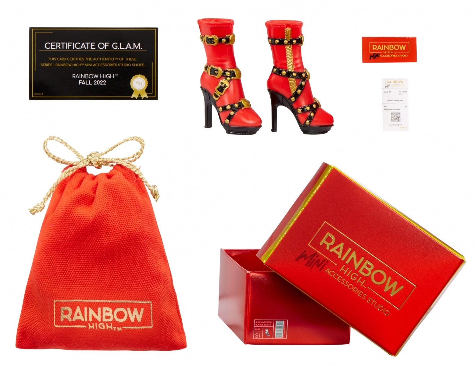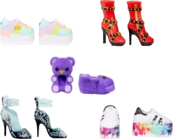 Découvrez une nouvelle dimension de la mode avec la Rainbow High Studio Série 1. Cet ensemble offre des possibilités époustouflantes pour votre poupée Rainbow High grâce à 27 paires de chaussures, incluant sandales, baskets, tongs, bottes et élégants escarpins de soirée :