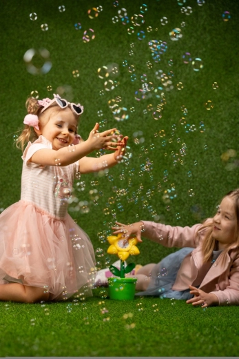 Cette machine à bulles fleurie transforme chaque après-midi au jardin en un spectacle féerique. Il suffit de verser la solution, d’allumer et, en un clin d’œil, apparaissent des dizaines de bulles scintillantes que les enfants adorent attraper et poursuivre. Son design compact en forme de pot de fleur est stable et facile à transporter.
