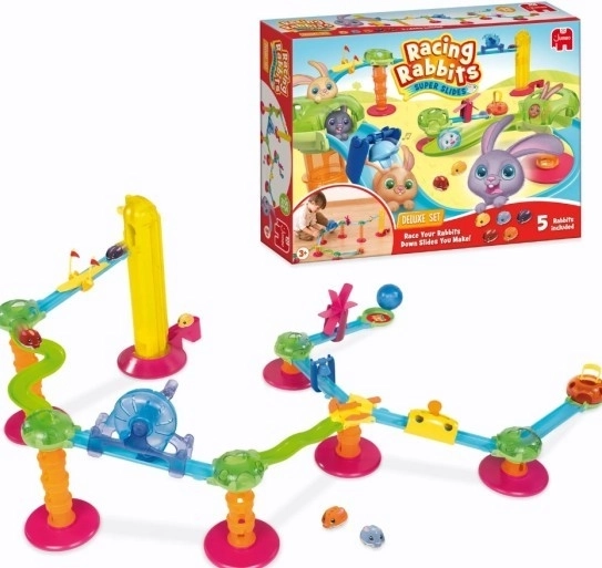 Le kit de construction Deluxe Racing Rabbits offre des heures de jeu créatif pour les enfants. Assemblez votre propre circuit de course avec des pièces qui s’emboîtent facilement. Placez l’un des 5 adorables lapins dans l’ascenseur, hissez-le et observez-le dévaler la piste !