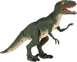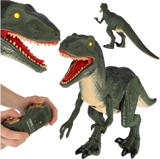 Découvrez le plaisir avec le dinosaure interactif VELOCIRAPTOR télécommandé. Ce modèle réaliste peut se déplacer, émet un rugissement de dinosaure, possède des yeux rouges lumineux et des pattes et une tête mobiles. Il est livré avec une télécommande au design fossile avec deux fonctions pour marche, lumières et sons.