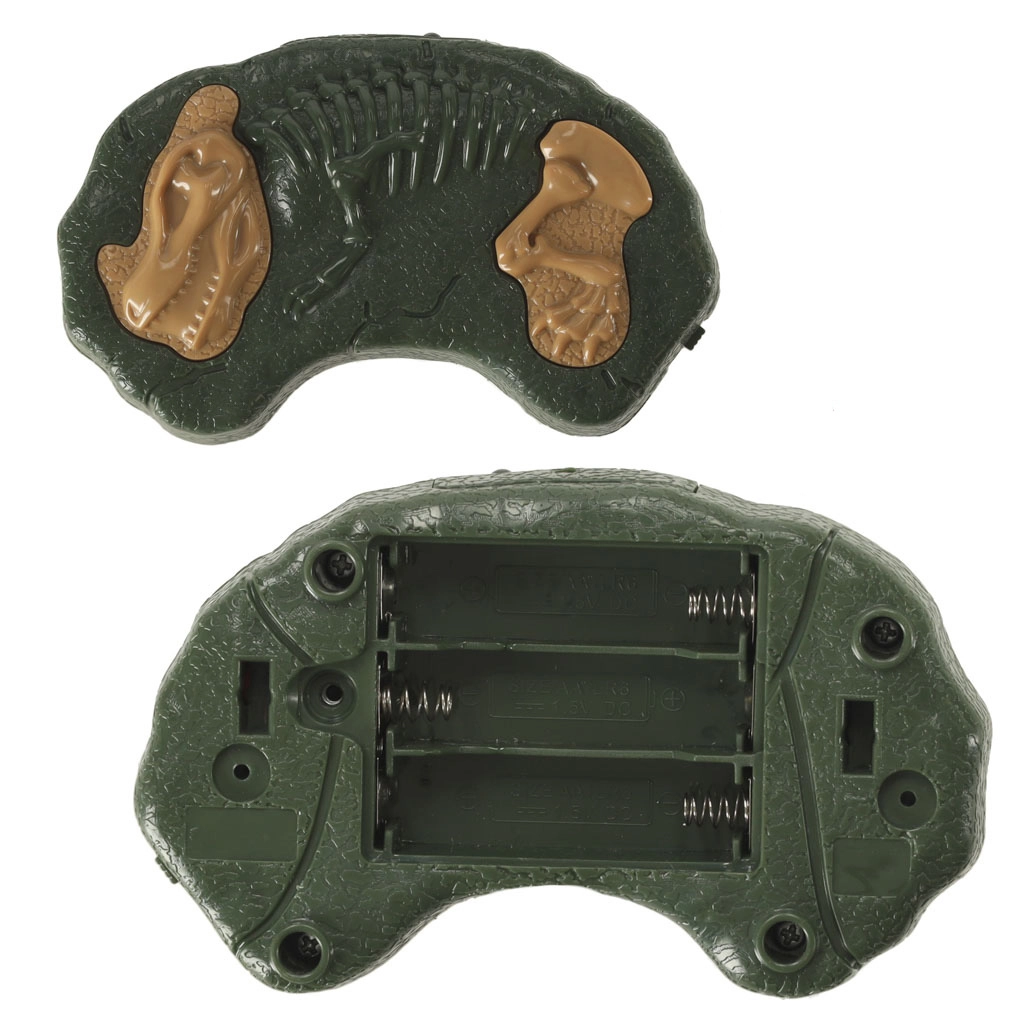La télécommande en forme de fossile dispose de 2 boutons intuitifs — l’un déclenche la marche et le mouvement des pattes, l’autre active les effets lumineux, le son et les mouvements de tête. Le jouet est idéal pour développer l’imagination et la motricité.