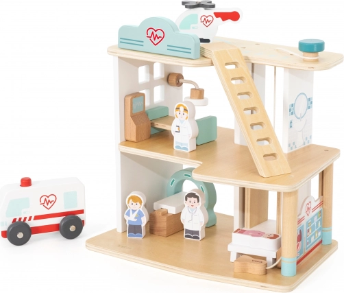 Le set d’hôpital à trois étages de la marque Viga est un jouet fascinant pour les petits médecins et infirmières ! Cette construction richement équipée offre des heures de jeu créatif autour du sauvetage de vies et des soins aux patients. Grâce à ses éléments variés, les enfants peuvent créer des scènes médicales réalistes, développant empathie et compétences sociales.