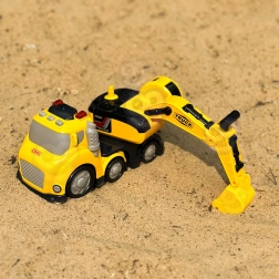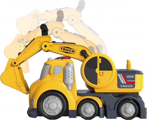 Le bras avec godet se lève et s’abaisse pour ramasser et déverser facilement le sable ou de petits jouets. Idéal pour jouer au chantier.