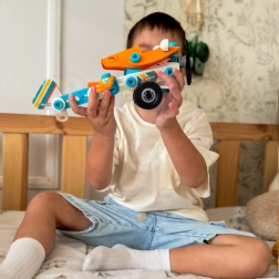 Le kit de construction d’avion coloré de la marque Woopie est un excellent choix pour les petits constructeurs. Les enfants assemblent eux-mêmes le modèle à partir des pièces, avec une roue mobile et une hélice, à l’aide des outils fournis et des autocollants. Le jouet développe la motricité fine, la pensée logique et les compétences techniques de base, et il est fabriqué en plastique résistant et en caoutchouc souple pour un jeu en toute sécurité.