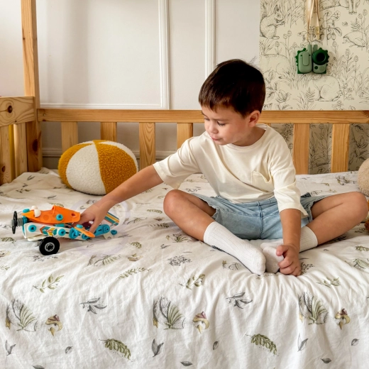Construis ton propre avion ! Ce kit de construction STEM créatif permet aux enfants d’assembler pas à pas un modèle joyeux avec hélice et roues. La boîte contient des outils de montage, des autocollants et toutes les pièces nécessaires, afin qu’ils puissent créer immédiatement et personnaliser l’apparence de l’avion selon leur imagination.