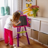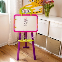 Structure légère et stable avec une étagère pour accessoires qui garde tout à portée. Le tableau convient dès 3 ans et aide à développer la créativité, la coordination œil–main et la coopération lors des activités partagées. La fonction fluorescente est alimentée par des piles AAA.