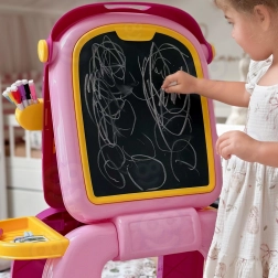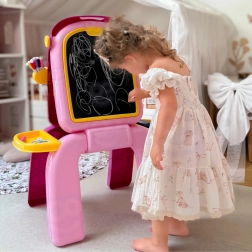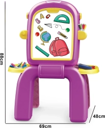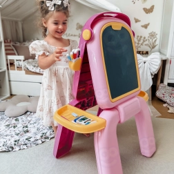 Un tableau pour enfants 2-en-1 coloré qui combine une surface blanche magnétique effaçable à sec et un côté noir pour craie, pour une créativité et un apprentissage sans fin. Grâce à sa construction stable, à ses rangements latéraux et à son riche ensemble d’accessoires (marqueurs, craies, gomme, aimants), il favorise la créativité, la concentration et la motricité fine sans écran – idéal à la maison, à la maternelle et comme cadeau.
